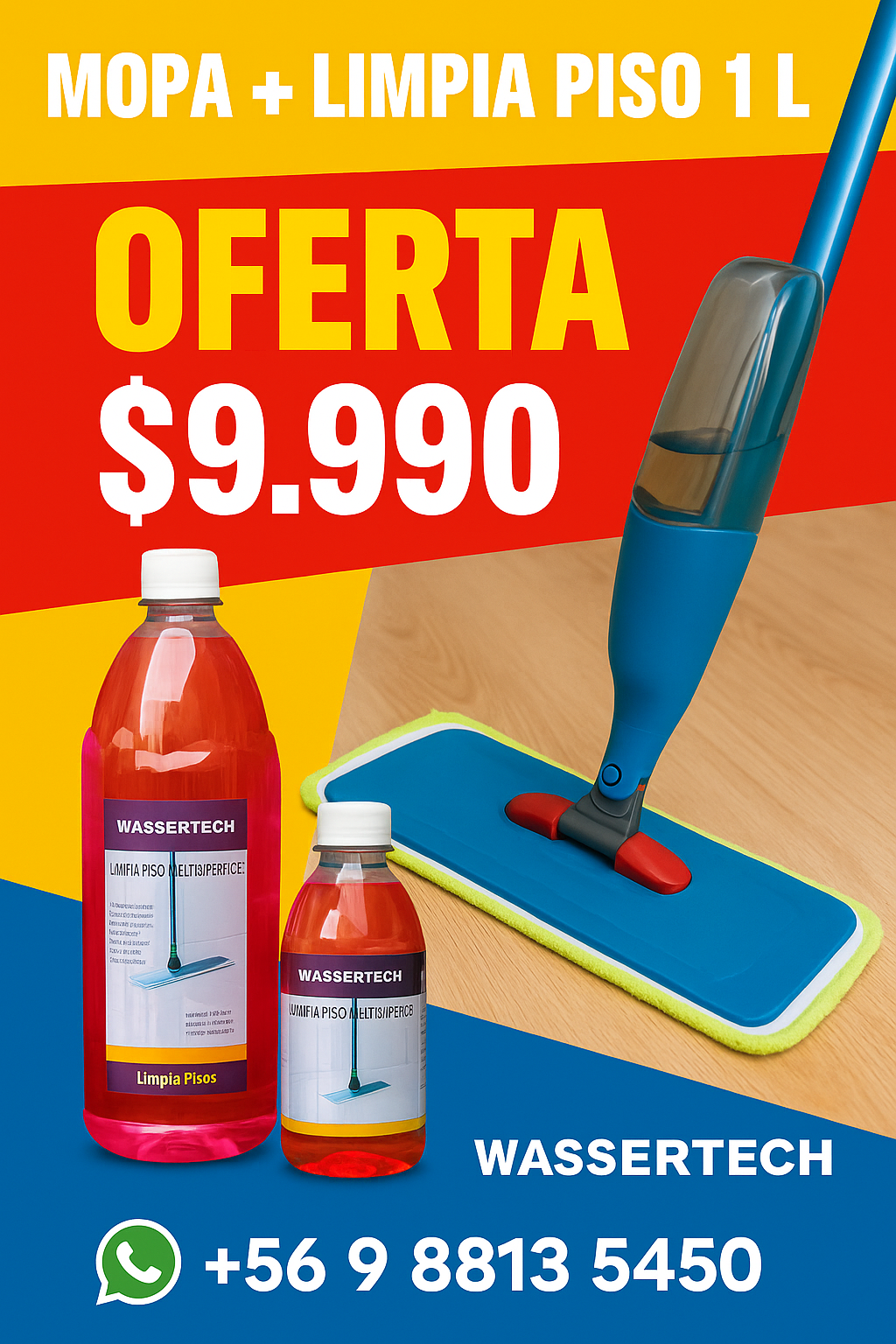 ¡No dejes pasar esta increíble oportunidad! En nuestra promoción especial, llevas a casa una práctica mopa con spray, diseñada para facilitar la limpieza de tus pisos y mantenerlos impecables en todo momento. Pero eso no es todo: además, ¡te llevas un limpiapisos GRATIS!